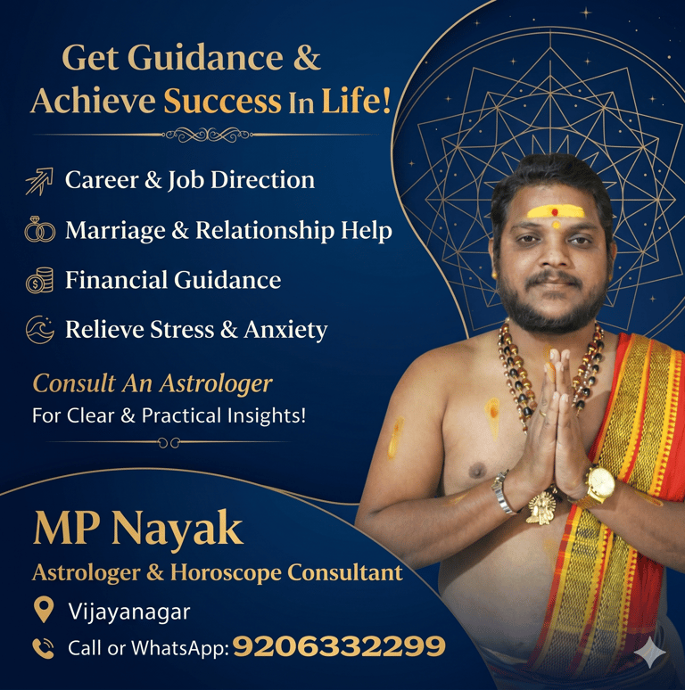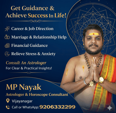 With years of experience in Vedic astrology, horoscope reading, and planetary analysis, MP Nayak has helped thousands of individuals overcome life challenges and move towards success and peace. His approach combines traditional wisdom with modern understanding, ensuring every consultation is clear, logical, and actionable.