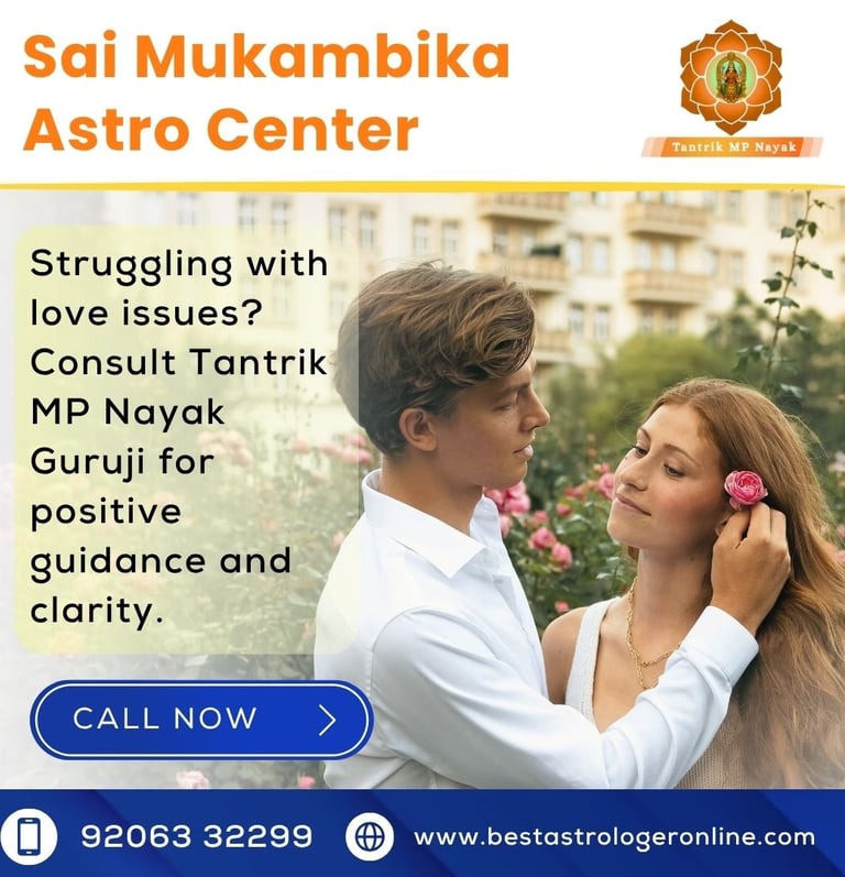 Tantrik MP Nayak Guruji has many years of experience studying astrology and traditional spiritual practices. His way of guiding people is simple and human. He listens carefully, understands the situation, and then explains astrological observations in a way that is easy to understand. Many individuals in Bangalore approach him when they feel confused about love, relationships, communication issues, or emotional stress. The purpose of the consultation is to bring awareness and help individuals make thoughtful decisions in their personal life.