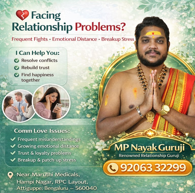 Life often presents emotional, personal, and relationship challenges that can feel difficult to handle alone. Whether you are facing misunderstandings with your partner, delays in marriage, family stress, or uncertainty about your future, the right guidance can help you make confident and positive decisions. With years of experience and a compassionate approach, MP Nayak Guruji is known for offering trusted astrology and relationship guidance to individuals and families across Bengaluru.