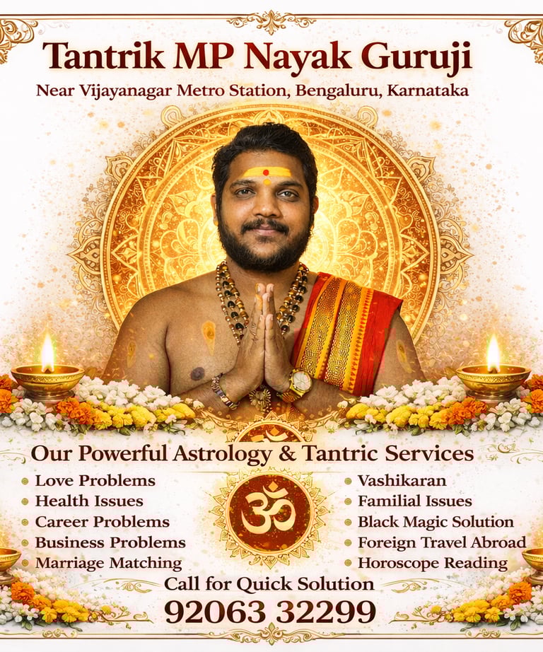 If you are searching for an experienced astrologer in Kengeri, Tantrik MP Nayak Guruji offers traditional astrology and spiritual guidance for individuals and families in and around Kengeri, Bangalore. With deep knowledge of Vedic astrology, horoscope analysis, and spiritual practices, Guruji provides consultations aimed at helping people understand life challenges and make informed decisions with clarity and confidence.
