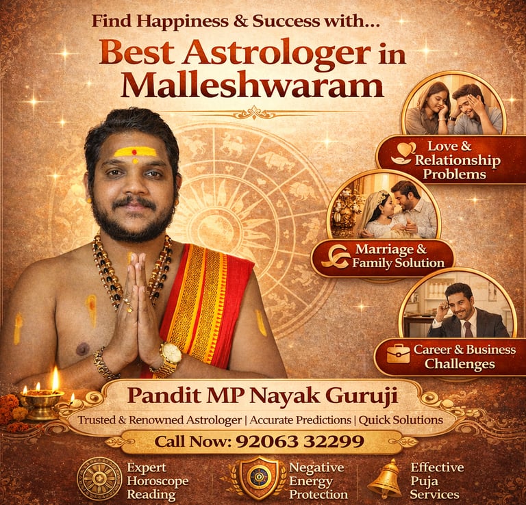 If you are looking for the best astrologer near Malleshwaram Bangalore, Pandit MP Nayak Guruji offers dependable astrology consultation tailored to your needs. Book your appointment today and take the first step towards clarity, confidence, and positive transformation in your life.