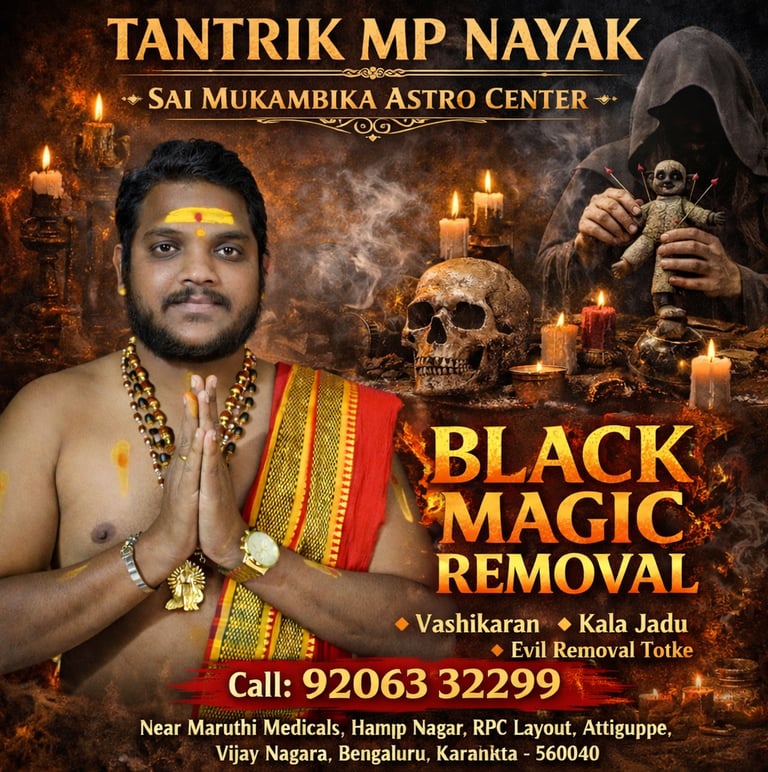 Sai Mukambika Astro Center, guided by Tantrik MP Nayak, provides traditional astrology and spiritual consultation services for residents of Rajajinagar, Bengaluru, and nearby areas.