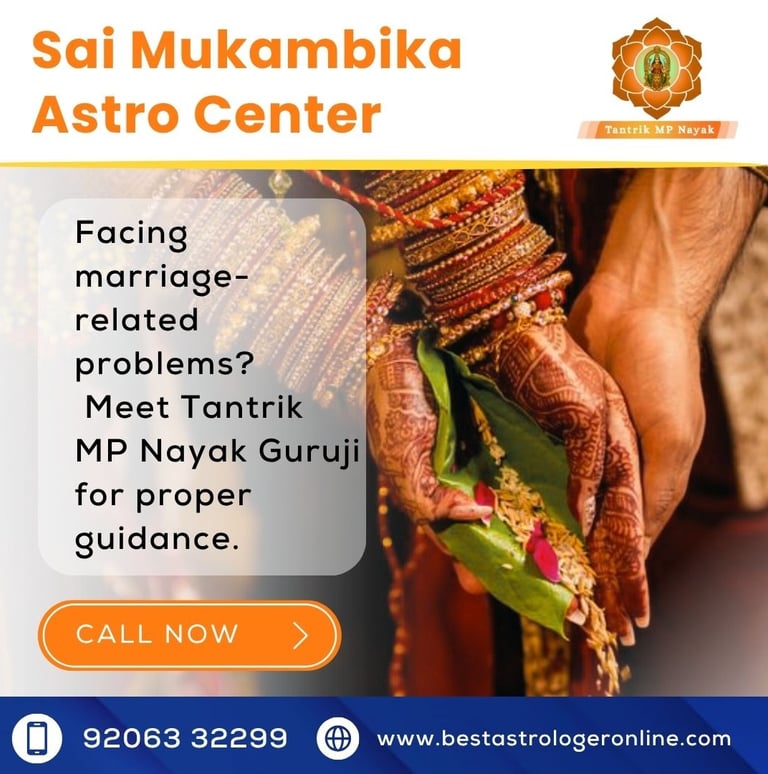 If you are looking for traditional astrology guidance in Vijay Nagar, Bangalore, Sai Mukambika Astro Center offers a calm and helpful space for people seeking clarity in their personal and family matters. Tantrik MP Nayak Guruji provides consultations based on long-practiced methods that focus on understanding life situations, offering suggestions, and helping individuals make thoughtful decisions. Many people visit for guidance related to relationships, marriage compatibility, family harmony, career direction, and general life challenges.