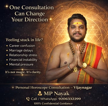 If you are searching for a reliable astrologer in Vijayanagar, Bangalore, MP Nayak offers personalized consultation to help you move forward with confidence. Whether it is career, marriage, finance, or family-related concerns, expert horoscope guidance can help you see opportunities more clearly.