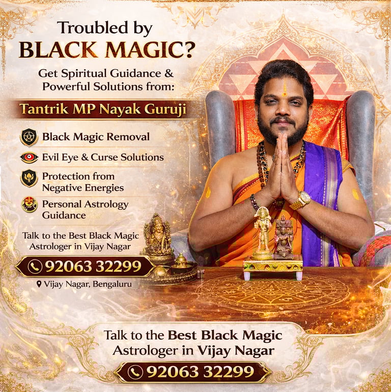 Are you facing unexplained problems in life such as constant failures, relationship issues, financial loss, or health disturbances? These may be signs of black magic effects, evil eye influence, or negative energy disturbances. If you are searching for a trusted black magic removal specialist in Vijay Nagar Bangalore, Tantrik MP Nayak Guruji provides powerful and result-oriented spiritual solutions.