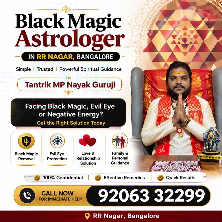 If you are searching for a Black Magic Astrologer in RR Nagar, Bangalore, Tantrik MP Nayak Guruji offers a trusted and professional approach to spiritual guidance. Whether you are dealing with relationship issues, negative energy concerns, or personal confusion, Guruji aims to help you find clarity and balance.