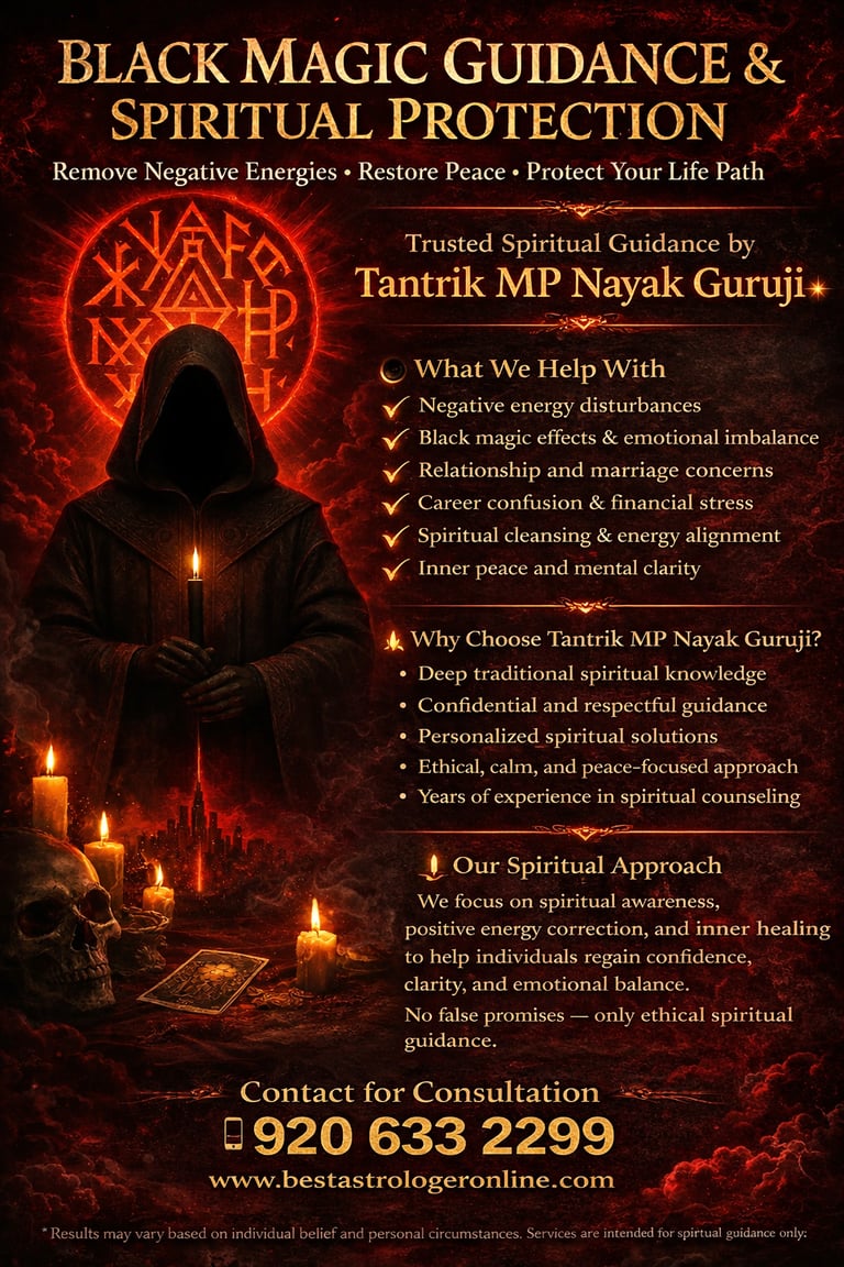 Many individuals in Vijay Nagar, Bengaluru seek spiritual guidance during times of emotional stress, confusion, or personal imbalance. As a Black Magic Astrologer in Vijay Nagar, we provide ethical, belief-based spiritual guidance designed to support emotional clarity, inner peace, and positive thinking.