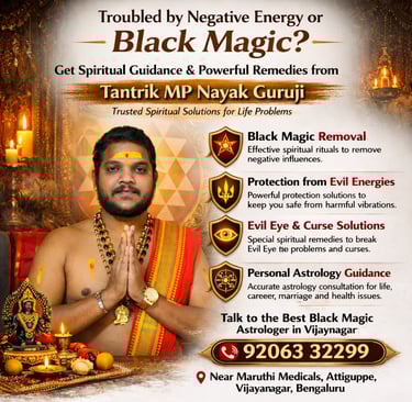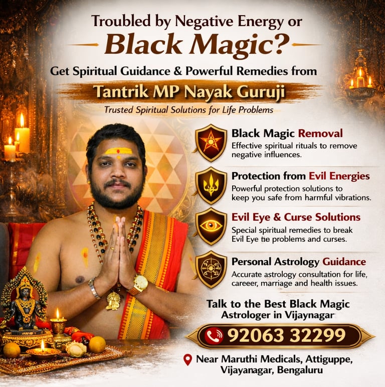 If you are experiencing continuous problems in life such as unexplained obstacles, relationship conflicts, negative thoughts, or sudden financial difficulties, many people believe these issues may be connected to negative spiritual influences. Tantrik MP Nayak Guruji, known as the best black magic astrologer in Vijayanagar Bangalore, offers traditional spiritual guidance and astrology-based remedies designed to help individuals find clarity, protection, and peace of mind.