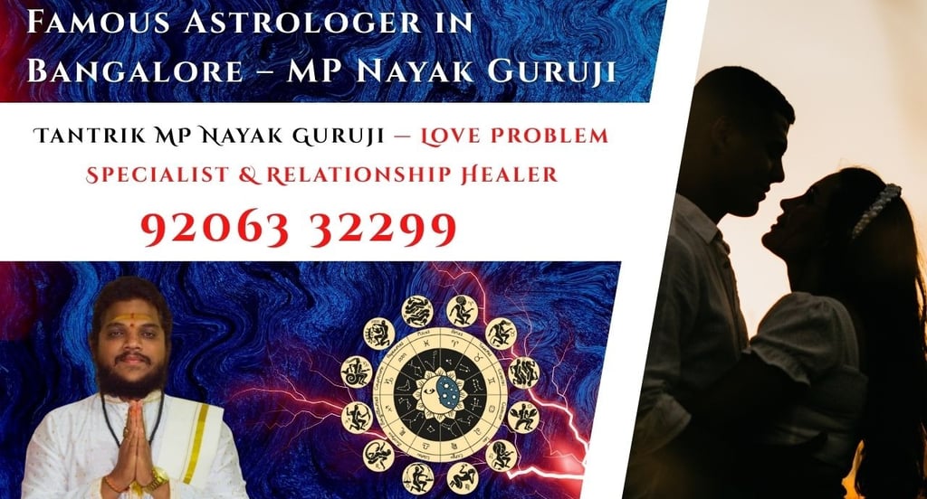 Tantrik MP Nayak Guruji is a well-known and highly respected astrologer in Vijayanagar, Bangalore. With deep spiritual knowledge and years of practical experience, he has guided countless individuals toward peace, happiness, and solutions to their life problems. Guruji is especially known for his expertise as a Love Problem Specialist and Relationship Healer, helping people overcome challenges in their love life and marriage.