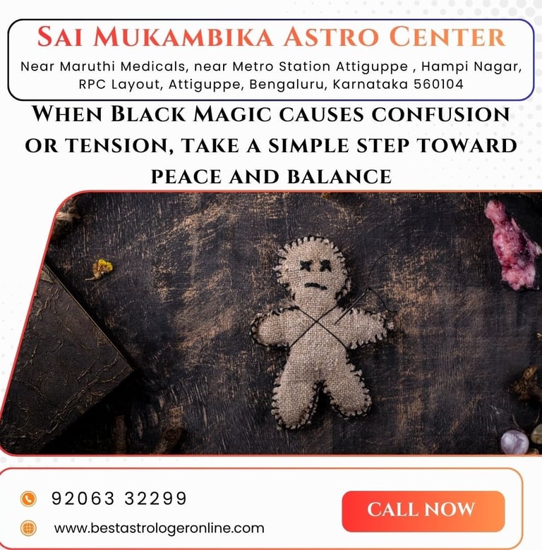 Many people in Bangalore face moments of confusion, stress, or emotional pressure when life does not move the way they expect. Sudden changes in relationships, work, or personal comfort can create fear and doubt. During such times, some people worry that Black Magic–related issues might be affecting their peace of mind. At Sai Mukambika Astro Center, traditional guidance is offered for those who feel disturbed or mentally low due to these concerns.