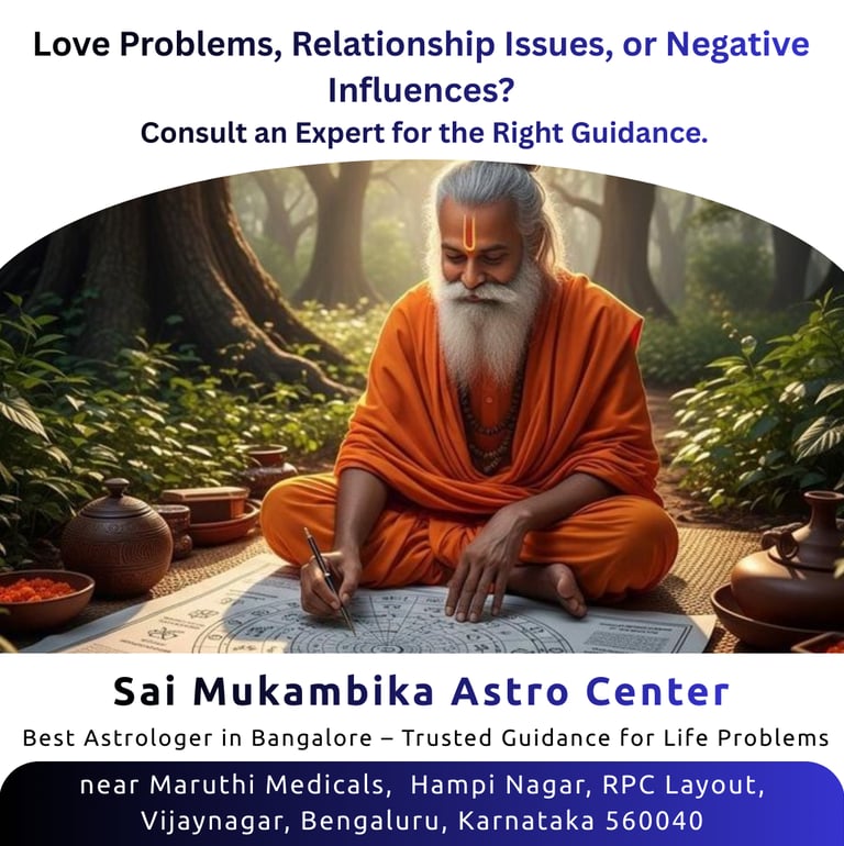 If you are searching for a love and relationship astrologer in Vijayanagar, Bengaluru, Sai Mukambika Astro Center aims to provide balanced guidance rooted in tradition and practical understanding. Our goal is to help you gain clarity, confidence, and perspective while navigating important personal decisions.