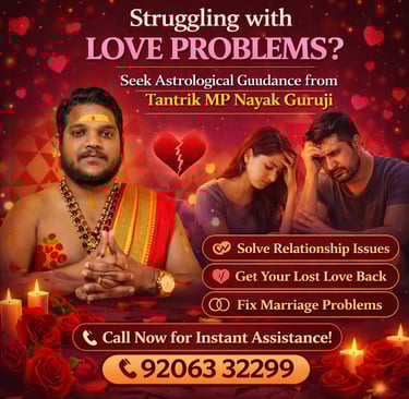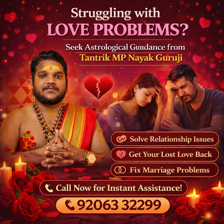 Tantrik MP Nayak Guruji offers personalized astrological guidance for individuals seeking clarity, emotional balance, and practical solutions for love and relationship challenges in Bangalore. With years of experience in astrology and spiritual consultation, Guruji focuses on understanding your situation deeply and providing direction based on traditional astrological principles.