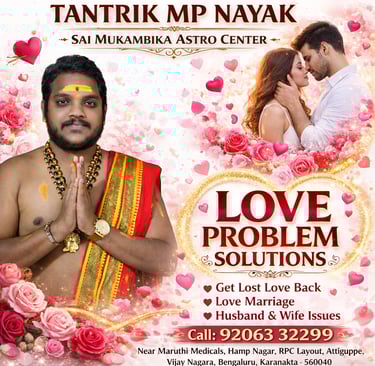 Love and relationship challenges are an emotional part of life, and many individuals seek traditional guidance to understand and navigate these situations with clarity and confidence. Tantrik MP Nayak, associated with Sai Mukambika Astro Center, offers traditional astrology-based guidance for individuals facing personal and relationship-related concerns in Bengaluru.