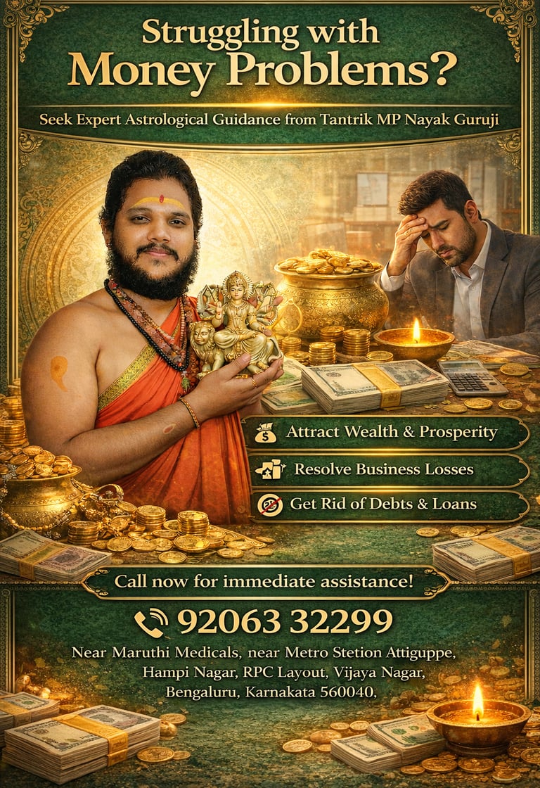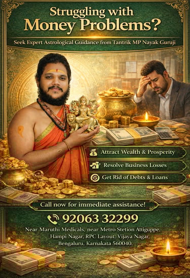 Tantrik MP Nayak Guruji is known for providing astrology-based consultations that focus on understanding financial concerns through horoscope analysis and planetary influences. His guidance is rooted in traditional astrological knowledge and aims to help individuals gain clarity about recurring money issues, delayed income, business uncertainties, or financial instability. People searching for a money problems astrologer in Vijaya Nagar often value structured consultations that explain astrological factors in a clear and responsible manner.