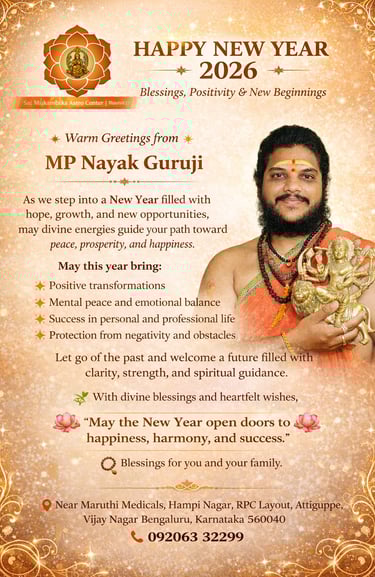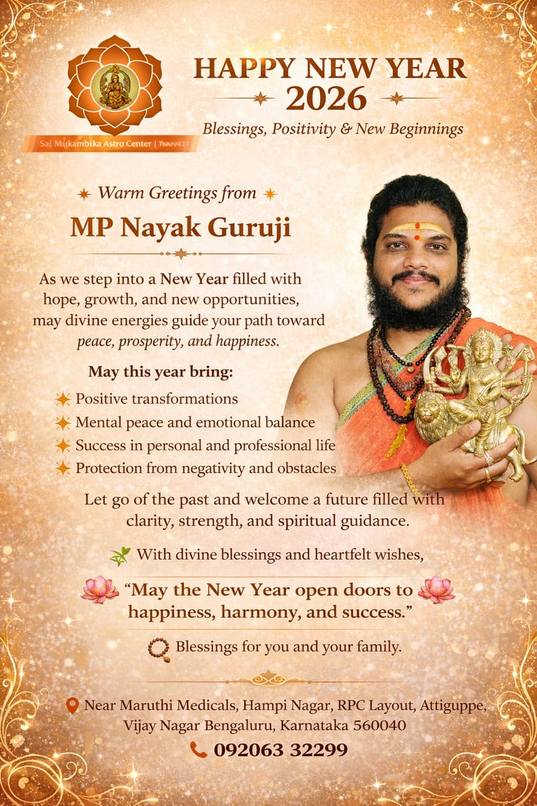 As we welcome New Year 2026, MP Nayak Guruji extends heartfelt wishes for peace, positivity, and meaningful new beginnings. This New Year is an opportunity to reflect, realign, and move forward with clarity, confidence, and inner strength.