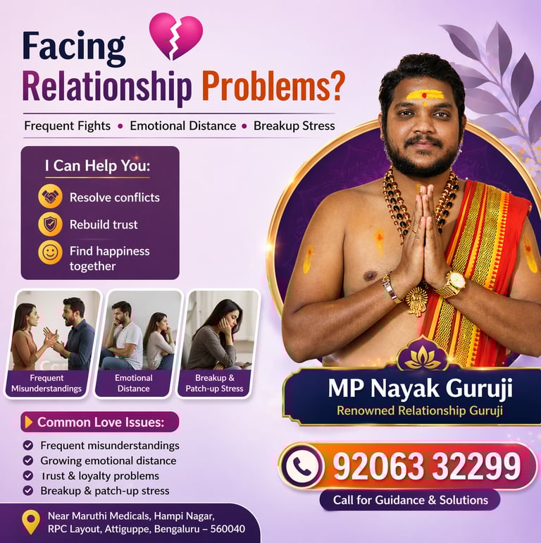 If you are in Malleshwaram, Bangalore, and facing relationship concerns, seeking ethical and practical guidance can help you move forward with clarity and confidence.