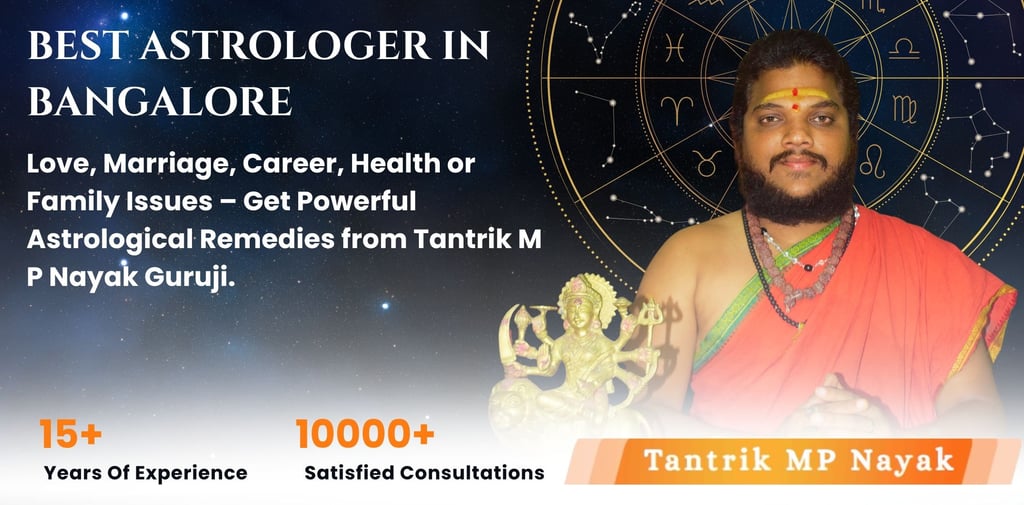 If you are searching for a reliable astrologer in Bangalore, you can connect with Tantrik M P Nayak Guruji for a personal or online consultation. Get genuine astrological insights that help you find direction, stability, and peace in life.