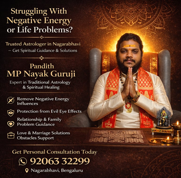 If you are searching for a “best astrologer near me in Nagarabhavi” or a “trusted astrologer in Bangalore”, Pandith MP Nayak Guruji is a well-known name in the area. His services are accessible to residents of Nagarabhavi and nearby locations, making it easy to seek guidance when needed.
