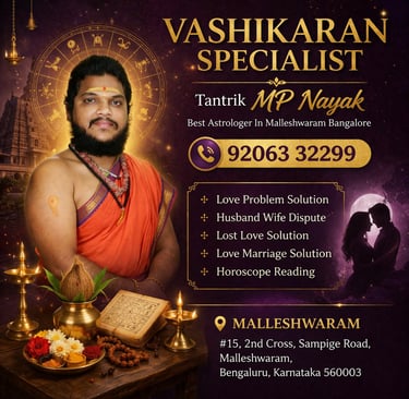 If you are looking for a Vashikaran specialist in Malleshwaram Bangalore, Tantrik MP Nayak offers structured, traditional, and personalized astrological guidance. Whether your concern is related to love, marriage, or life decisions, you can gain clarity through professional consultation.