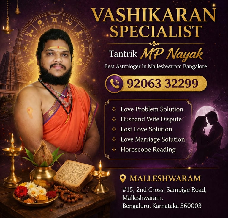 If you are searching for a Vashikaran specialist in Malleshwaram Bangalore, you are likely looking for guidance, clarity, and solutions to personal challenges. Tantrik MP Nayak offers traditional astrological consultations focused on helping individuals navigate relationship concerns, emotional stress, and life uncertainties through time-tested spiritual practices and horoscope-based insights.